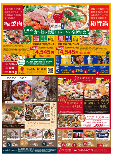 忘新年会プランも4店舗ありますのでお好みのプランをお選びいただけます。たくさんのご予約をお待ちしております。
